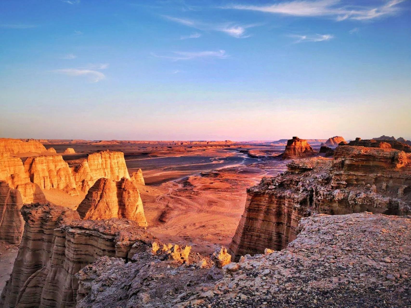 2. "湖泊遗迹":罗布泊曾经是一个大湖,但由于气候变化和人类活动,湖泊已经干涸,只留下一些干涸的湖床和湖泊遗迹。