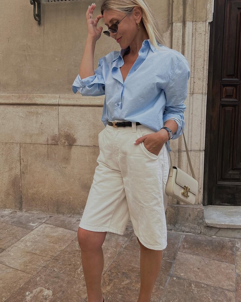 夏天是各种短裤缤纷出笼的季节,例如带着街头感兼老爹风的牛仔五分裤,可说是当今潮流宠儿。但是,想强调优雅和精緻度的女生,在短裤上还有什么选择?另一项近年备受欢迎的单品,无疑是绝佳助攻,西装短裤结合了西装布料和剪裁的正式感,以及短裤带来的轻盈姿态,成为明星、时髦精网红的夏日穿搭法宝。本篇带你一起看西装五分裤的超好入门搭配公式。  Instagram @nooriana 西装五分裤怎么选西装短裤比你想得还要好搭配,但是先挑选一条能衬托身材的款式,是高分造型的最佳基础。首先,近年宽版裤款盛行,可以先入手线条俐落且宽鬆的款式,再来是高腰设计能够拉长腿部比例,看起来会比低腰短裤时髦,最后建议裤管下缘落在大腿一半至膝上之间,是最适合大众的时髦甜蜜点。另外,一条质感、做工俱佳的中窄版皮带永远是西装短裤画龙点睛的加分细节。  Instagram @maxmara 西装五分裤穿搭1:成套搭配最基本的就是将西装短裤、西装外套成套搭配。例如超模Gigi Hadid选择成套的同色西装外套、衬衫、西装五分裤,整体潇洒又率性。  Instagram @less.thelabel 西装五分裤穿搭1:成套搭配搭配西装外套时,外套能以宽鬆款式为主,让整体更放鬆、更修饰身形。当然西装外套底下的内搭也可以充满变化,配一件素T在日常各种场合都不出错,配一件小可爱则带一点夏日魅力,甚至直接单穿西装外套也能展现性感的一面。  Instagram @ceriseamusante_ 西装五分裤穿搭2:搭配西装背心不想在炎夏披着西装外套出门?用西装背心来搭配西装短裤也可以,这个造型看起来既专业又时髦,且西装背心配上高腰西装短裤,能让四肢看起来修长纤细。  Instagram @less.thelabel 西装五分裤穿搭2:搭配西装背心配西装短裤时以相近的白色、亚麻色等浅色调互相搭配,短版的西装背心可以单穿,很适合日间出游;长版背心内搭T-shirt,无论休闲或上班穿,看起来都知性又近人。  Instagram @carmenandmeboutique 西装五分裤穿搭3:搭配坦克背心当西装短裤遇上极简俐落的坦克背心,能给予女生一种外放、随性又精緻的性感。简单的白色背心,可以搭配面料有变化的格纹或条纹西装短裤,不费力就配出夏日度假造型。  Instagram @zara__worldwide 西装五分裤穿搭3:搭配坦克背心羊毛或丝绸等细緻面料混织的背心,搭配深灰色的西装五分裤,则是营造出欧洲女人的率性优雅,再穿上一双高跟凉鞋,看似轻鬆写意的约会Look就完成了。  Instagram @zara__worldwide 西装五分裤穿搭4:搭配T-shirt如果单纯想要轻鬆有型地出门走走、逛街,西装短裤搭配T-shirt绝不出错,而且不妨在颜色上施展巧思,用上衣与短裤的撞色来营造极简又有活力的造型,又或者以基本款黑T和白T搭配有花样图案的西装短裤。这个组合虽然简单,依然可以充满变化。  Instagram @everwoodatelier 西装五分裤穿搭5:白色筒袜+黑色乐福鞋从鞋子作为搭配思路,西装短裤最早起源于英国贵族男校制服,搭配一双白色中筒袜、黑色乐福鞋,就是带点学院风的穿搭,给人相当中性且年轻活泼的气质,上身穿着T-shirt或衬衫都适合。 延伸阅读: 10款五分裤穿搭教学:打造时尚夏天造型,必入手一件五分裤2024夏季必备一件复古风Jorts牛仔五分裤!8种穿搭技巧参考:靠衣柜基本单品就能驾驭Salomon何以跻身时髦单品?从山间走到时装週,怎么搭一次教你COS为什么这麽红?时尚编辑推荐这十件2025春夏单品绝对值得你纳入本季衣橱举报